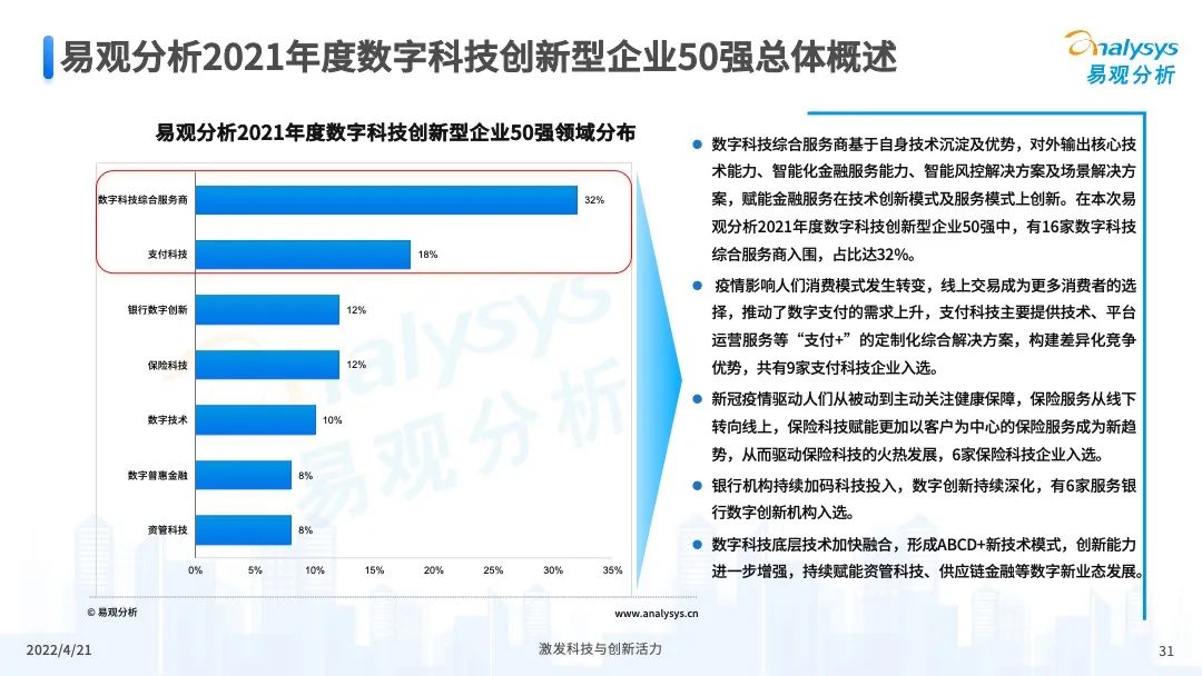 近日,易观分析发布的《中国数字科技专题分析2022》公布了“2021年度数字科技创新型企业TOP50”榜单,神州信息继2020年榜单后再度入选。